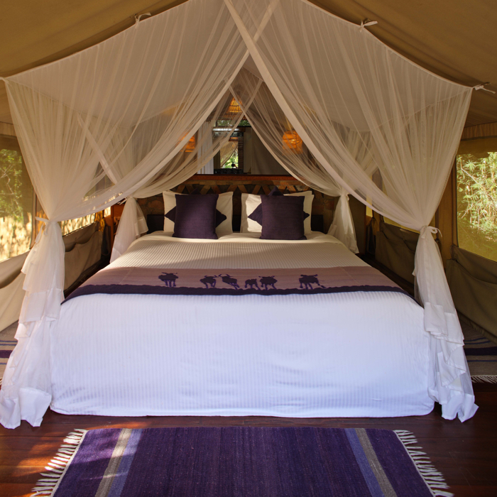 Sarova Mara Game Camp is set amidst wide gardens of manicured lawns and exotic plants. The camp offers spacious luxurious tents attractively constructed in light beige canvas with large “windows”, wooden flooring and a permanent roof. All have ensuite bathrooms with hairdryers, shaver outlets for 110v and 200v and fully stocked mini bar. Large wooden decks offer a place to relax outside your tent. Enjoy the wonderful view while listening to the orchestra of rasping cicadas, croaking tree frogs and the intermittent call of birds and monkeys - a memorable symphony. All meals are served at the Isokun Restaurant overlooking the main pool, with a backdrop of the beautiful forest cover that surrounds the camp. The camp is uniquely laid out over the sprawling grounds that include rolling manicured greens, a virtual mini forest of indigenous shrubs and exotic trees, a large pond stocked with fish, mini bird sanctuary and an authentic Maasai village adjoining the Camp.